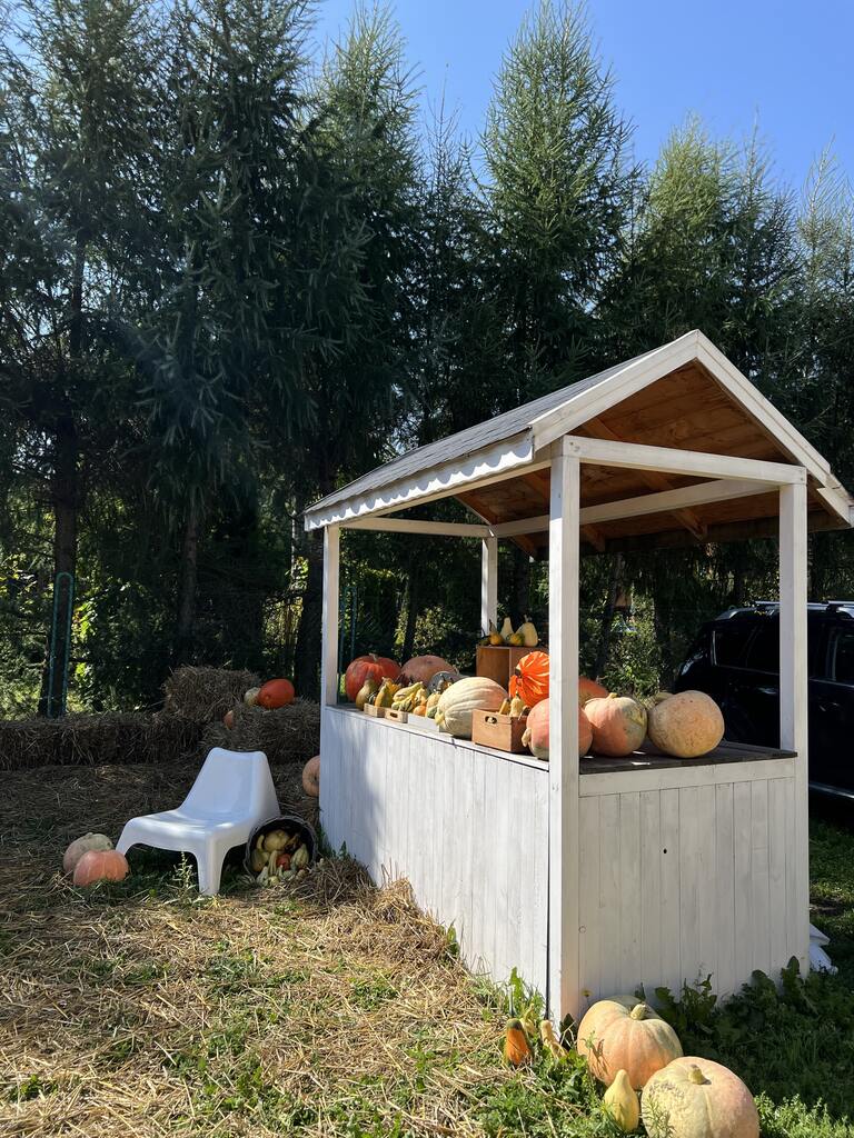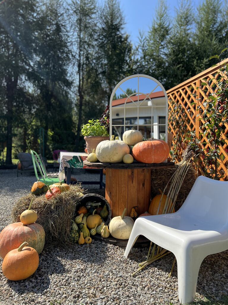 Tuż obok pachnącej świeżymi wypiekami cukierni rozciąga się miejsce pełne dyni — od maleńkich po ogromne, pomarańczowe olbrzymy.