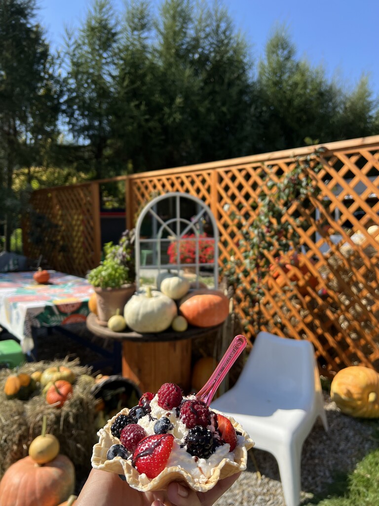 Pole dyniowe, które stanowi doskonałe tło do degustacji słodkości inspirowanych darami tej pory roku. Na miejscu można spróbować takich specjałów jak: