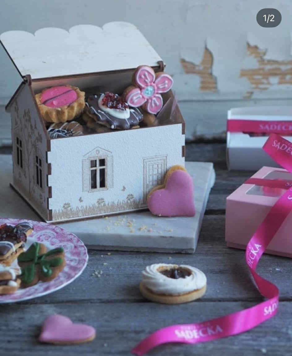 Słodkości zamknięte w pięknym, ekologicznym pudełku, które zawiera kilka rodzajów ciasteczek wypełnionych nadzieniem orzechowym, karmelowym, adwokatowym, powidłem różanym, różnego rodzaju rureczkami, rogalikami, kruchymi ciasteczkami oraz ręcznie malowanymi pierniczkami. Różnorodność ta sprawi, że każdy znajdzie coś dla siebie.