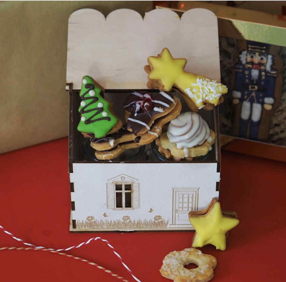 Nasze ciasteczka są wykonywane ręcznie z najlepszej jakości produktów. A drewniany domek nadaje się również jako ozdoba.