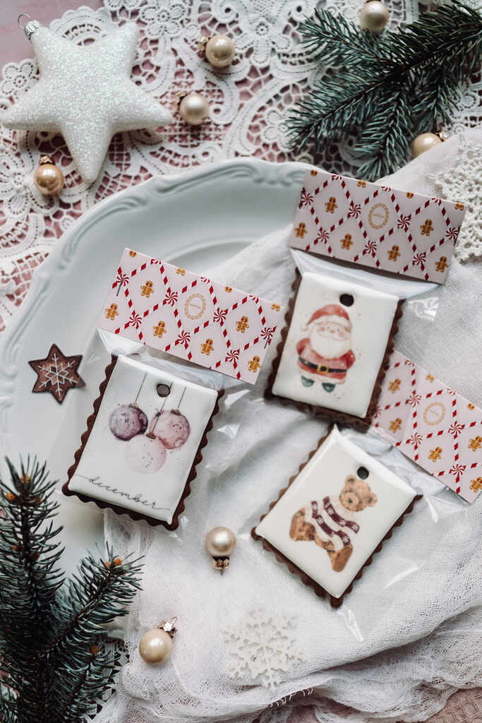 Urocze świąteczne pierniczki, które zachwycają detalami! Delikatne zdobienia – bombki, Mikołaj i uroczy miś – sprawiają, że każdy z nich to małe dzieło sztuki. Zapakowane w eleganckie opakowania, idealnie nadają się na świąteczne prezenty lub dekoracje stołu. Tworzą klimat pełen ciepła i magii.